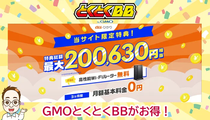 代理店からの申し込みが不安という場合におすすめなのがauひかりのプロバイダGMOとくとくBBです。