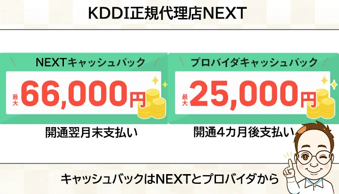 | プロバイダキャッシュバック | 25,000円 | 20,000円 | 4カ月後 |