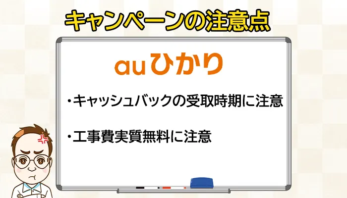 auひかりのキャンペーンはいくつか注意点があります。