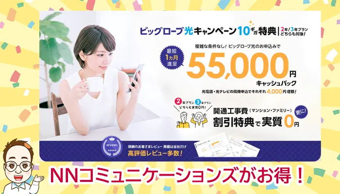 その中でもお得なのがビッグローブ光の代理店、NNコミュニケーションズです。
